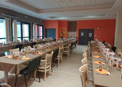 Ce repas, organisé pour les 87 résidents et le personnel de soins, a réuni 115 convives jusqu’au fromage et 130 personnes pour le dessert.