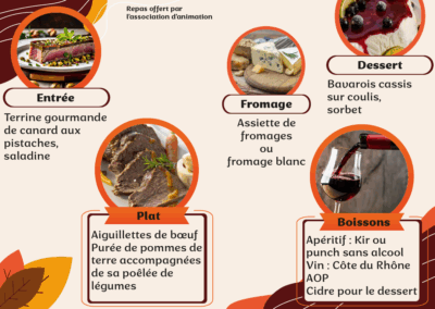C’est grâce aux manifestations qu’organise l’équipe d’animation avec les bénévoles de l’association d’animation, et aux dons, que ce repas a pu être financé et proposé cette année.