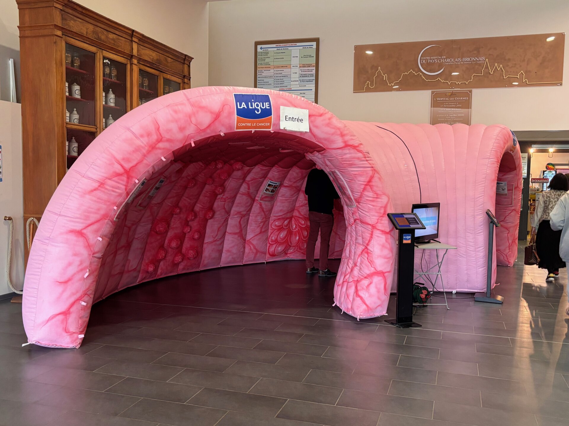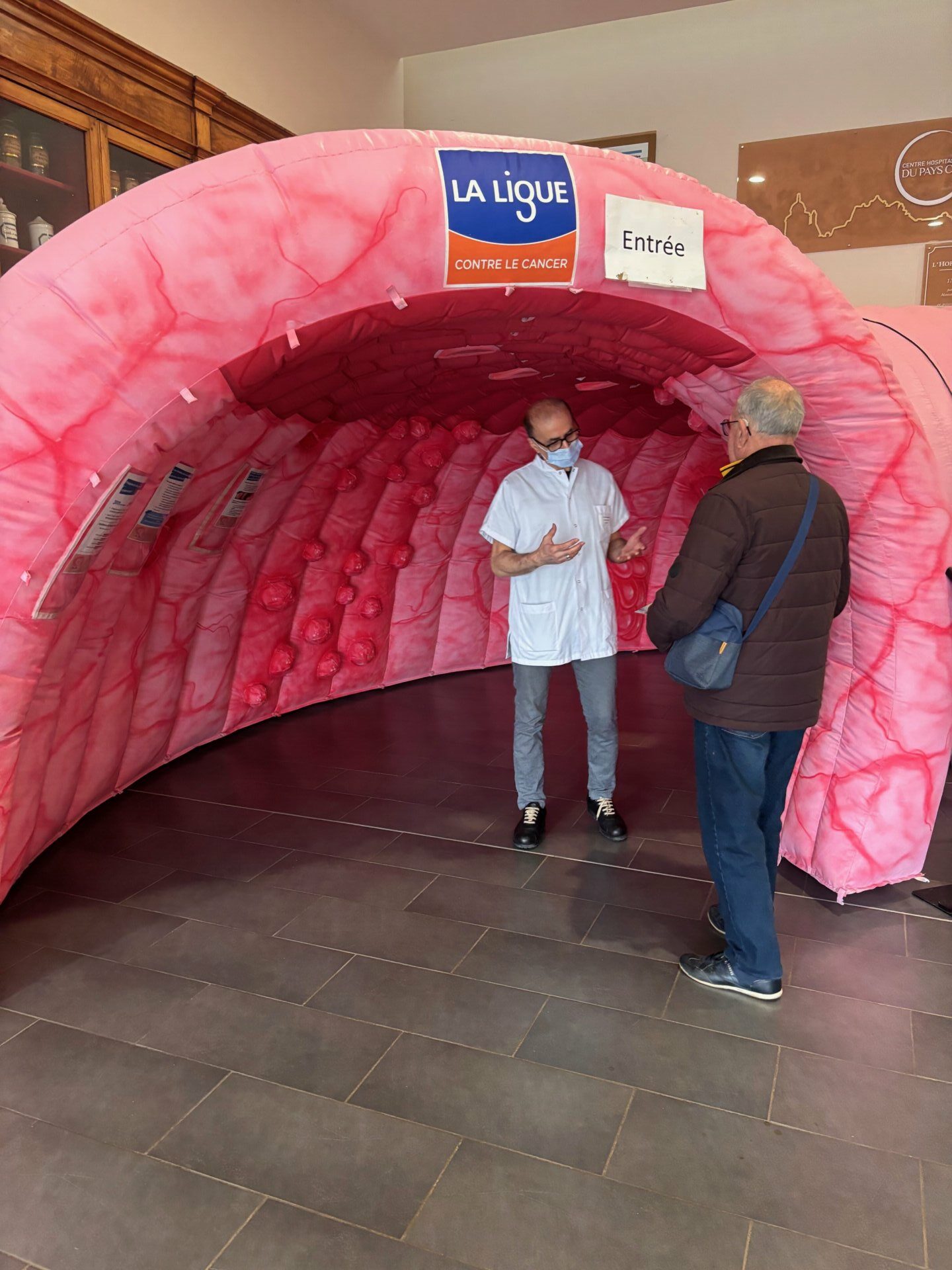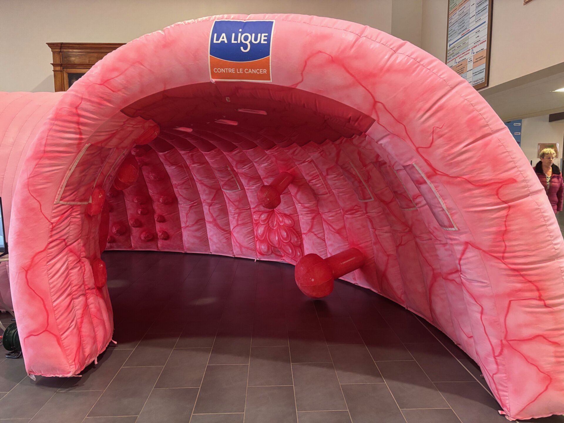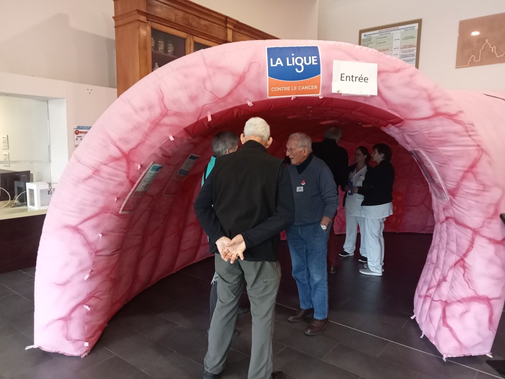 Pour cette édition 2026 de Mars Bleu au CHPCB, un « colon géant » a été mis en place par la Ligue Nationale contre le Cancer. Cela a permis aux visiteurs de découvrir, en le traversant, pourquoi il est si important de se faire dépister.